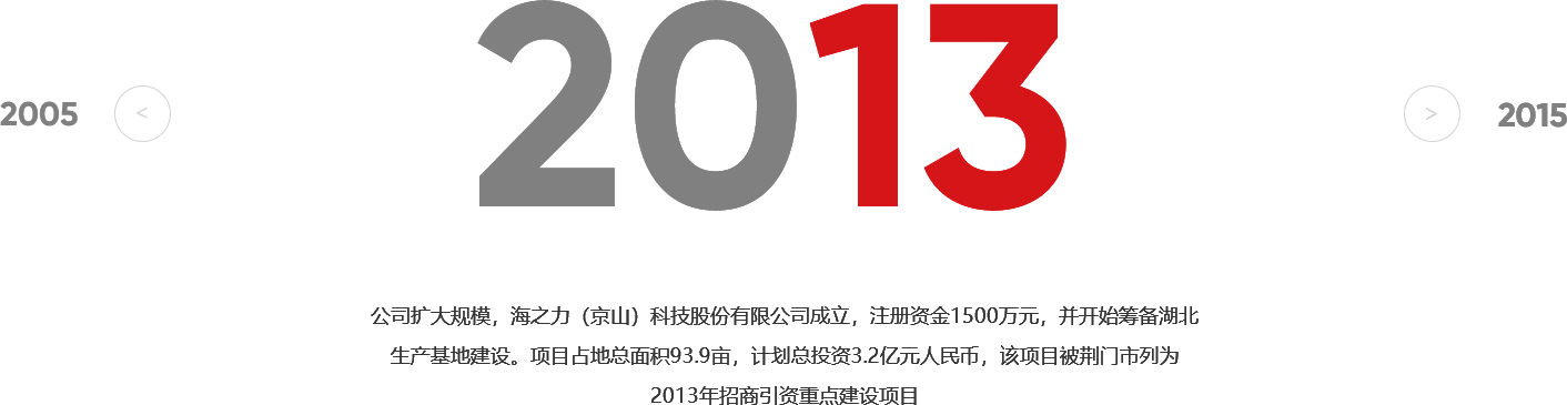 海之力品牌創(chuàng)立于1997年,公司的前身為佛山市海之力機(jī)械有限公司。2013年,公司在湖北省荊門(mén)市京山市成立海之力(京山)機(jī)械科技有限公司,并建立湖北生產(chǎn)基地。湖北生產(chǎn)基地總占地93.9畝,總投資超3億元,同年被荊門(mén)市列為招商引資重點(diǎn)建設(shè)項(xiàng)目。